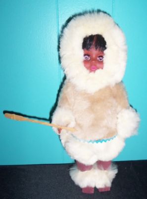 Title (ebay affiliate link): Antique VTG 11.5" Hard Plastic Doll Eskimo Alaska Yupik Inuit Northern Suede Fur