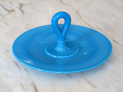 VTG Antique Victorian Blue Milk Glass Candy Cookie Dessert Tray Plate w/ Handle