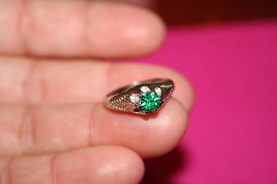 14K GP ANTIQUE EMERALD GREEN STONE PRONG RING