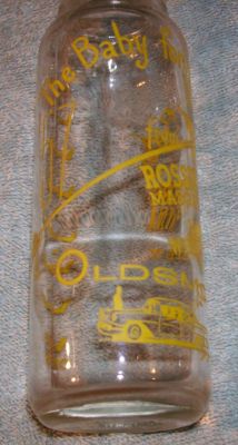 1957 Oldsmobile glass baby bottle 57 Olds Rossini Motors Masontown Penna