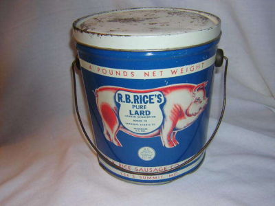 Title (ebay affiliate link): Antique R.B. Rice 4 lb Lard Bail Handle Tin Pail Bucket Old Vtg Adv Can Org Lid