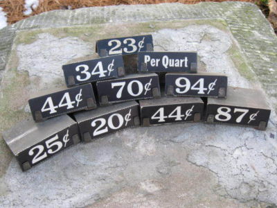 Title (ebay affiliate link): 10 Vintage 1920s General Store Tin Price Tag Displays Industrial Mecantile