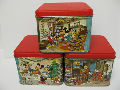 Title (ebay affiliate link): Lot of 3 Disney Mickey Donald Christmas Carol Scrooge Tin Box Container Canister