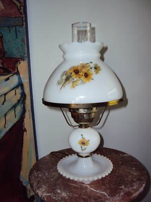 VINTAGE HAND PAINTED MILK GLASS BRASS LAMP SUNFLOWERS