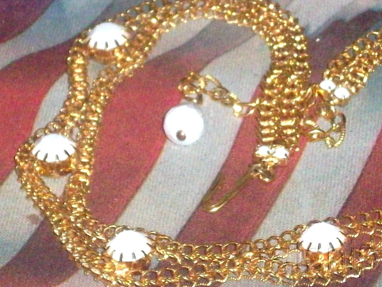 Vintage White Milk Glass Goldtone Chain Necklace HOBE'