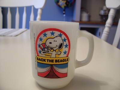 1980 Snoopy Milk Glass Mug Back The Beagle Collectors 1