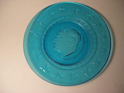 Title (ebay affiliate link): VINTAGE FRANKLIN DELANO ROOSEVELT PLATE-Blue glass with portrait.8 1/2"