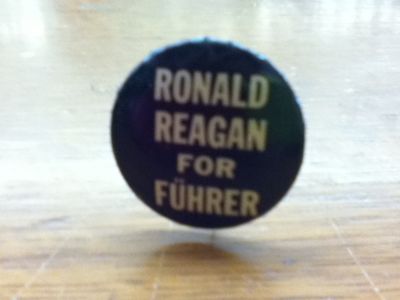 Title (ebay affiliate link): VINTAGE RONALD REAGAN FOR FUHRER POLITICAL PIN PINBACK BUTTON