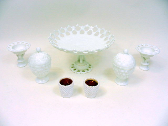 LOT 9 FENTON MILK GLASS HOBNAIL CANDY CAKE CANDLE