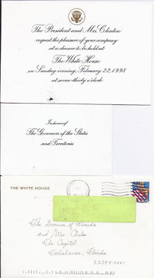 Title (ebay affiliate link): 1998; CLINTON WHITEHOUSE INVITATION 6 Total Pieces; Sent to Gov. Chiles