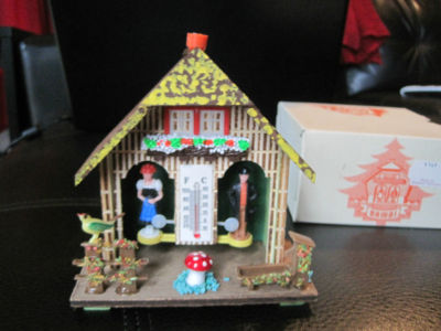 VTG GERMANY WOOD HOUSE WEATHER THERMOMETER TOGGILI FIGURES NIB INSTRUCTION BOOK