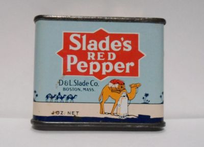 Title (ebay affiliate link): Vintage SLADE'S Red Pepper Spice Tin Camel in Desert Graphics