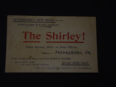 Title (ebay affiliate link): THE SHIRLEY HOTEL PETERSBURG VIRGINIA ADVERTISING CARD CIRCA 1900