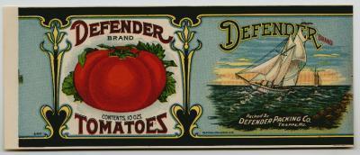 (46) Defender Tomatoes Labels Vintage Ship Sailing
