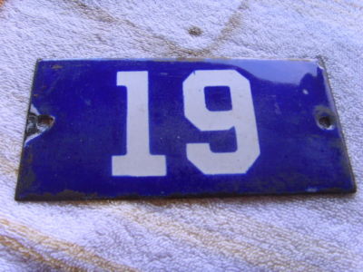Nice OLD Blue and White #19 Sign LOOK