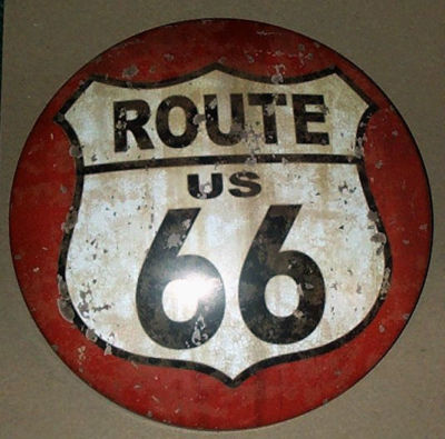Rustic Vintage Round Dome Shape Route 66 Tin Sign
