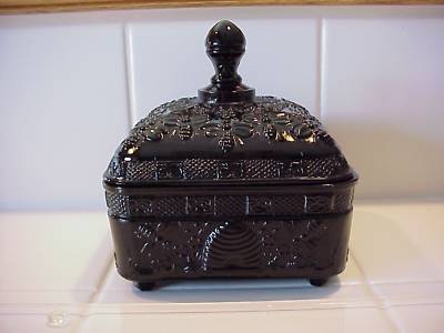 Black Milk Glass Honeycomb Dish with Bees
