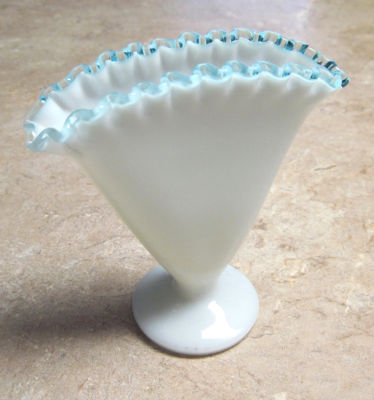 FENTON Glass Aqua Crest Fan Vase Milk Glass Nice NR