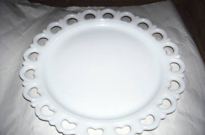 12 1/2" MILK WHITE GLASS CROCHET OPEN LACE CAKE PLATE