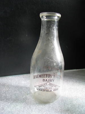 GLASS QUART MILK BOTTLE RAEMELTON GOLDEN GUERNSEY OHIO