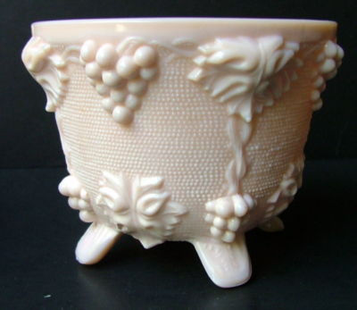JEANNETTE SHELL PINK MILK GLASS 4 FTD CANDY DISH GRAPE