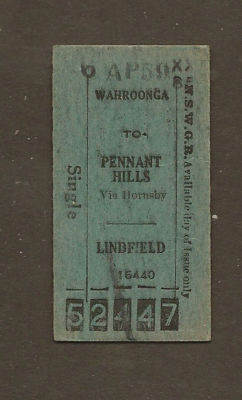 Title (ebay affiliate link): WAHROONGA - LINDFIELD 1945 ISSUE CITYRAIL RAILWAY TICKET