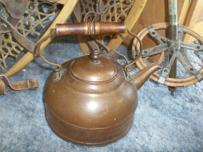Title (ebay affiliate link): ANTIQUE COPPER TEA POT--WOODEN HANDLES--GREAT PATINA TO THE COPPER
