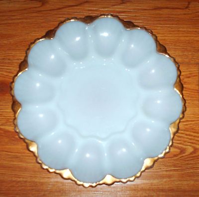 VINTAGE WHITE MILK GLASS GOLD TRIM DEVILED EGG PLATE