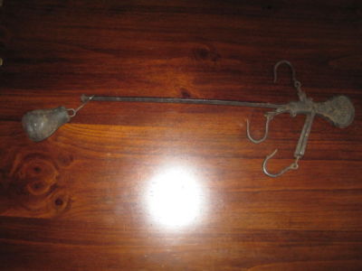 Title (ebay affiliate link): VINTAGE MEAT SCALE FROM FARM ESTATE AUCTION, HEAVY DUTY IRON WITH COUNTERWEIGHT