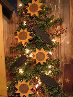 10 Primitive Garden CROW SUNFLOWERS Folk Art Ornies