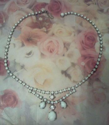Title (ebay affiliate link): Vintage Milkglass and Clear Rhinestone Choker Necklace EVC!
