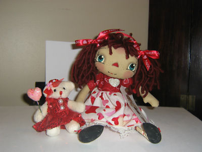 PRIMITIVE RAGGEDY ANNie Beary Happy Valentines DOLL/TAG