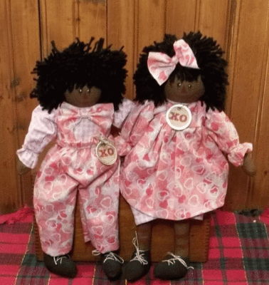 Title (ebay affiliate link): Handmade BLACK Raggedy Ann & ANDY Doll Set VALENTINE