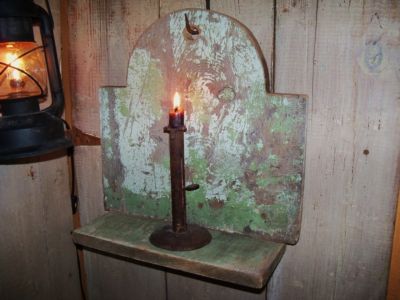 Title (ebay affiliate link): HANGING CANDLE SHELF MAKE DO TRACES OLD GREEN PAINT THICK WOOD PRIMITIVE