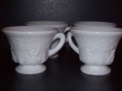 7 MILK GLASS PUNCH BOWL CUPS with GRAPES ON THEM