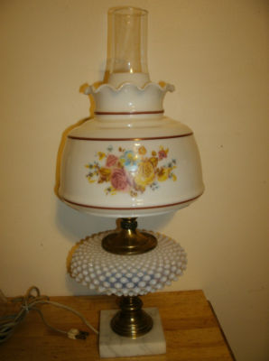Title (ebay affiliate link): BEAUTIFUL VINTAGE DECRORATIVE LAMP-HOBNAIL MILK GLASS -HAND PAINTED FLOWERS