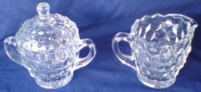 Title (ebay affiliate link): Cubist Depression Style Glass Sugar Bowl and Creamer