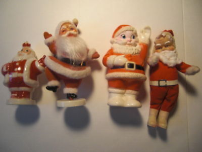 Title (ebay affiliate link): VINTAGE Christmas 4 SANTAS Santa Claus Squeeze Toy Hard Plastic Bank Straw fill