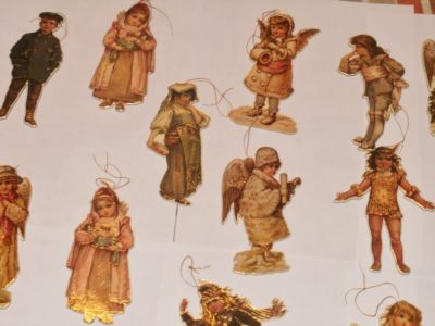 Title (ebay affiliate link): Vtg Victorian Reproduction 1920s Hard Cardboard Christmas Ornaments 1983 1988