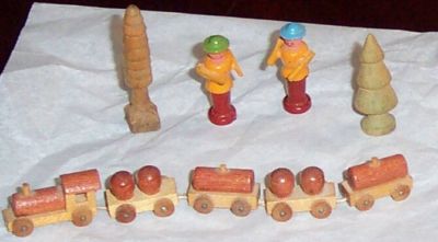 Title (ebay affiliate link): Vintage Erzgebirge Putz Penny Toys Wood East Germany Train 2 Men 2 Trees Rare