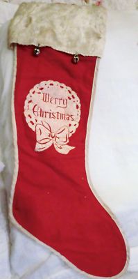 Title (ebay affiliate link): Great Vintage Merry Christmas Xmas stocking with furry top and bells