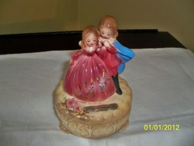 Title (ebay affiliate link): VINTAGE JOSEF ORIGINALS MUSIC BOX VICTORIAN COUPLE "THE IMPOSSIBLE DREAM"