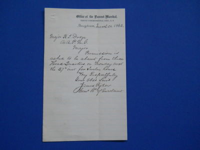 Civil War Document 1864 Major Absence From Headquarters Vintage Antique Paper 64
