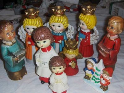 Vtg Antique Lot Xmas Holiday Angel Choir Boy Homco Candle Holder Ornament Decor