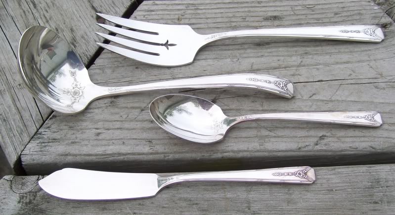 Title (ebay affiliate link): 4 Oneida Community MILADY Silver Plate 1940 SERVING Pcs