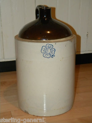 Title (ebay affiliate link): 5 gallon stoneware Jug Miller Pottery Alabama Blue Clover brown w/ handle OLD