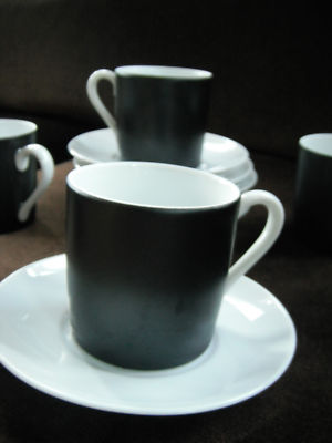 6 VINTAGE BLACK & WHITE EXPRESSO CUPS AND SAUCERS