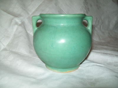 Title (ebay affiliate link): Antique Art Pottery sm Oil Jar cabinet Vase Matte Green Glaze vtg bulbous rare