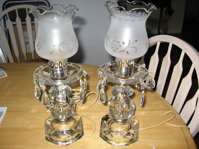 ANTIQUE LAMPS ONE PAIR, CRYSTAL APPEARANCE
