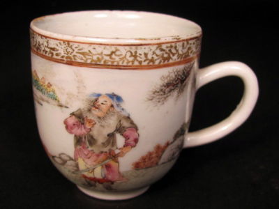 C Antique Chinese Export Hand Painted Handled Cup w Figures